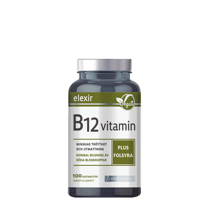 B-12 Vegan från Elexir Pharma innehåller en hel del vitamin B12, hela 4 000 % av det rekommenderade dagliga intaget. Vitamin B12 är ett utmärkt kosttillskott för dig som behöver extra energi under dagen, detta vitamin bidrar till att minska trötthet och utmattning.