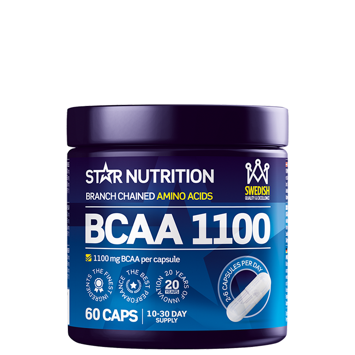 BCAA 1100 från Star Nutrition är en högdoserad BCAA-produkt i kapselform. Varje dosering innehåller hela 3300 mg grenade aminosyror i fri form.