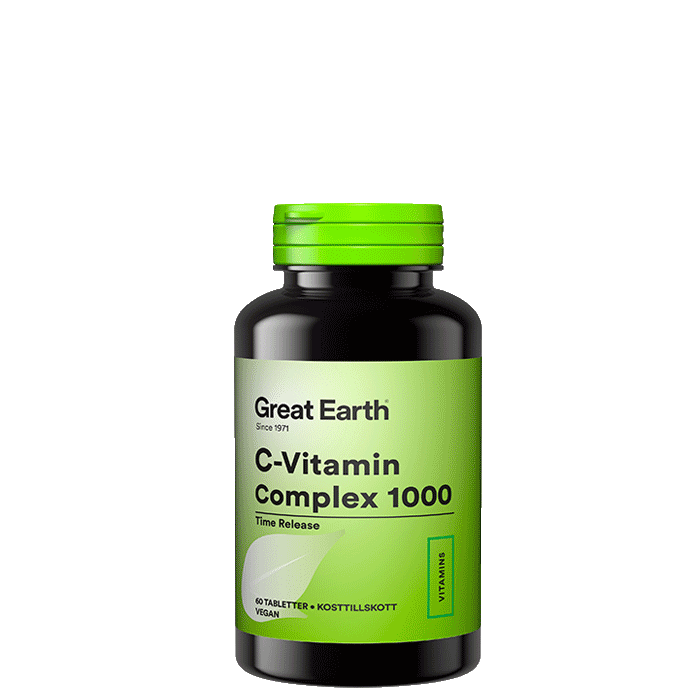 Ett kosttillskott med extra mycket C-vitamin per tablett, hela 1 000 mg. Kosttillskottet från Great Earth använder speciell teknik för att underlätta upptaget.