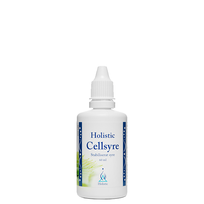 Holistic Cellsyre innehåller stabiliserat syre – som är syre bundet i vatten. Lösningen är nästan lukt- och smakfri.
