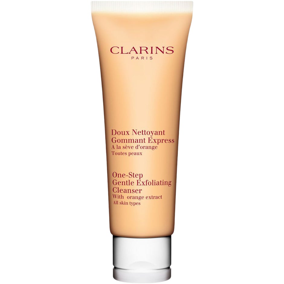125 ml, Clarins One-Step Gentle Exfoliating Cleanser puhdistaa ja kuorii ihon hellävaraisesti ja poistaa iholta kuolleen ihosolukon ja lian. Mieto puhdistusgeeli sisältää kuorivia ainesosia, jotka auttavat heleyttämään ihoa ja tekemään siitä sileämmän tuntuisen. Selluloosasta valmistetut mikrorakeet ja moringauute heleyttävät ihoa samalla kun ihana appelsiinin tuoksu tuo energiaa päivään.Kuoriva puhdistusgeeliVoidaan käyttää päivittäinRaikas appelsiinin tuoksuKoko: 125 mlKäyttöLevitä pieni määrä puhdistusgeeliä kostealle kasvojen iholle ja hiero kevyesti välttäen silmänympärysaluetta. Huuhtele lämpimällä vedellä. Käytä kuorivaa puhdistusgeeliä päivittäin tai tarpeen mukaan.