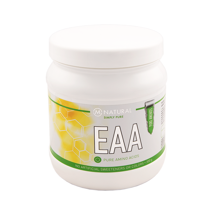 EAA, 300 g, Maustamaton – M-Naturalin maustamaton EAA antaa keholle välttämättömiä aminohappoja. Tuote on makeutusaineeton ja väriaineeton.