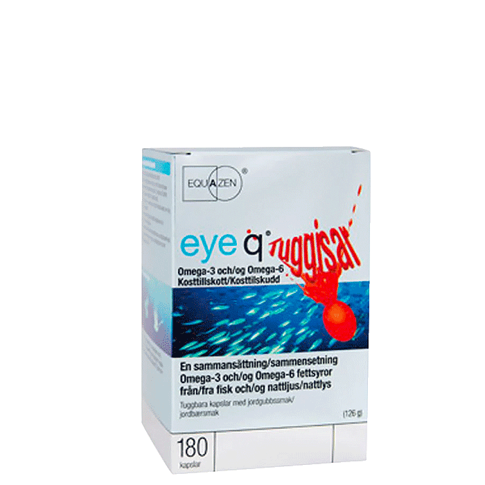Eye Q Chews Tuggisar – för barn och vuxna. Ett nytt tillskott i Eye Q-serien. Eye Q Tuggisar är en unik kombination av fettsyror – med smak av jordgubb!