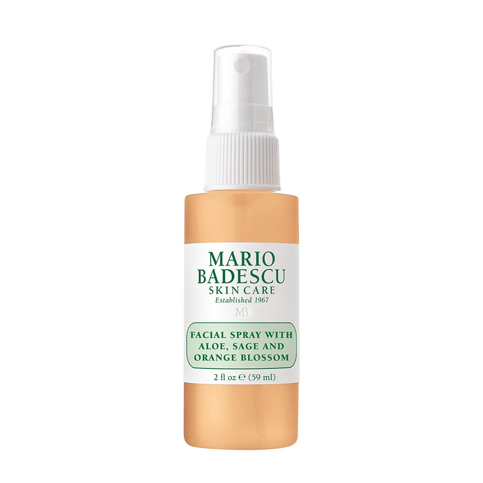 59 ml, ”Mario Badescu Facial Spray With Aloe, Sage & Orange Blossom on kosteuttava ja heleyttävä kasvosuihke. Sisältää raikastavaa salviaa ja appelsiininkukkavettä, jotka auttavat kirkastamaan ihoa ja tekemän siitä kuulaan ja tasaisen. • Kosteuttava ja heleyttävä kasvosuihke väsyneelle iholle. • Sopii kaikille ihotyypeille. VINKKI: Tee meikistäsi kuulas suihkuttamalla kasvosuihketta meikkisiveltimeesi tai meikkisieneesi ennen meikkivoiteen tai peitevoiteen levitystä. Suihkuta kasvosi vielä lopuksi kasvovedellä kauniin hehkun saamiseksi. Entistä raikkaamman ja virkistävämmän vaikutuksen saat säilyttämällä tuotteen jääkaapissa. KÄYTTÖ: Suihkuta kasvoille, kaulalle tai hiuksiin aina tarvittaessa. Käytä joko meikin alla tai päällä tuomassa lisäkosteutusta, pitkin päivää virkistämässä ihoa tai viimeistele meikillesi heleä lopputulos. Jos tuotetta joutuu silmiin, huuhtele ne hyvin vedellä.