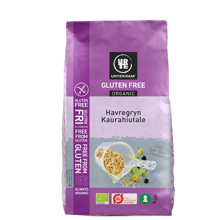 Glutenfria havregryn från Urtekram innehåller ekologiska havregryn som har behandlats med omsorg för att kunna kallas glutenfria. Med ett högt fiberinnehåll!