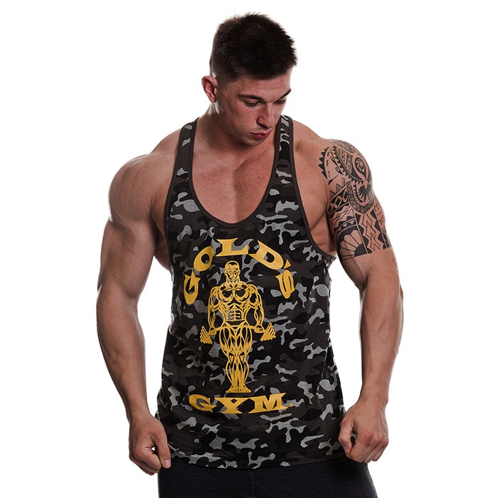 Muscle Joe Premium Stringer – Nyhet från legendariska Gold’s Gym. Byggarlinne i svart camo.
