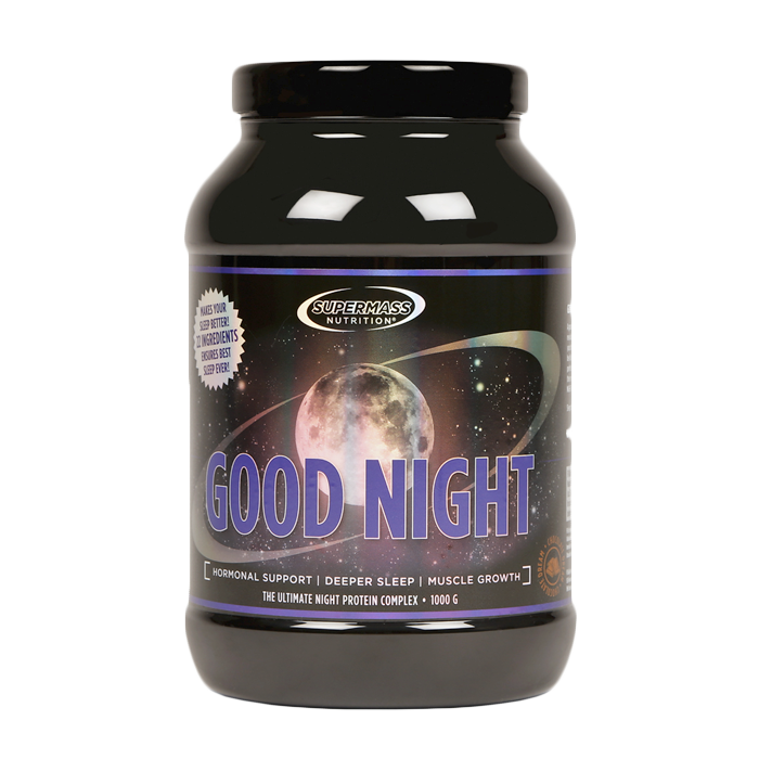 Good Night – Supermass Nutritionin kehittynyt yhdistelmä proteiinia ja aminohappoja. Rauhoittaa kehoa yötä vasten ja antaa ravinteita lihaksille.