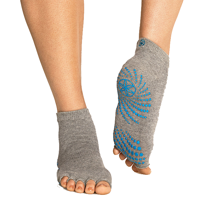 Heather Grey Toeless Yoga Socks från Gaiam är ett par snygga och smarta strumpor med öppen tå och antihalk-sula. Framtagna för att möjliggöra yogaträning utan matta!