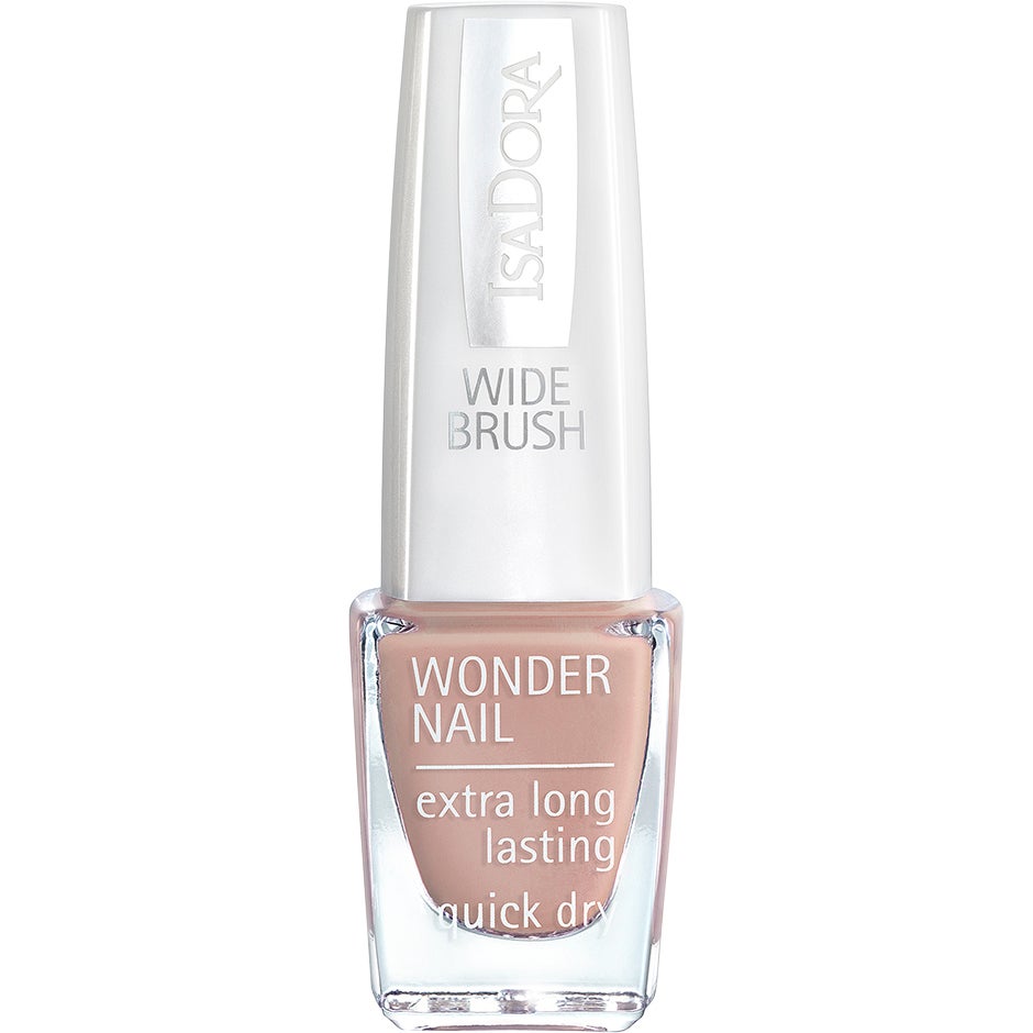 6 ml, IsaDora Wonder Nail -kynsilakka takaa upean manikyyrin joka kerta. Kynsilakka levittyy kynnelle tasaisena kerroksena ja erikoismuotoiltu, leveä sivellin helpottaa levittämistä. Kynsilakan koostumus on kestävä ja hypoallergeeninen, ja lakka jättää kynnelle kauniin värin ja kiiltävän pinnan. Pigmenttipitoinen koostumus on riittävä jo 1-2 kerroksella.Väri: Hazelnut – klassinen beigeHypoallergeeninen koostumusKoko: 6 ml
