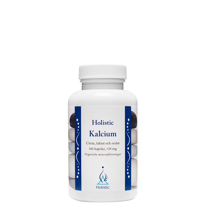 Kalcium i kapslar från Holistic. Kalcium är den vanligaste mineralen i vår kropp och behövs för att bibehålla en normal benstomme och normala tänder.
