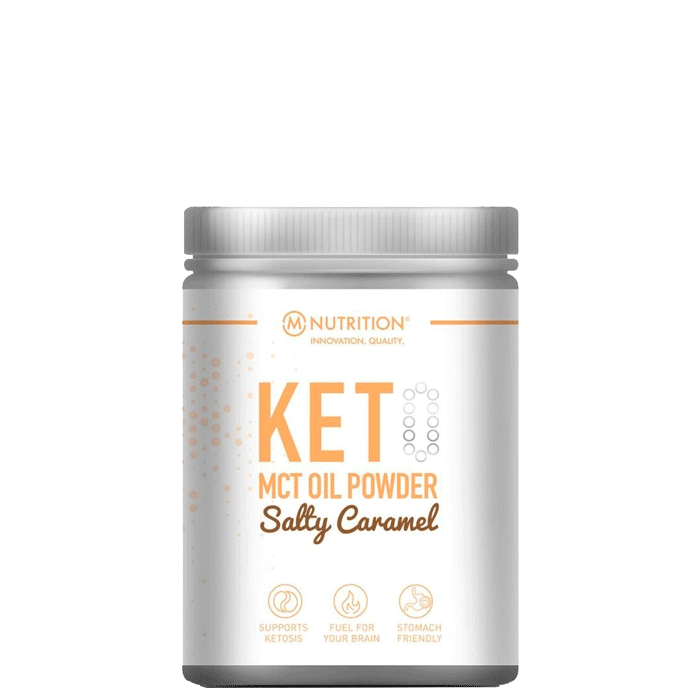 Keto MCT Oil Powder M-Nutritionilta sisältää MCT: tä jauheena ja siinä on ihana suolaisen toffeen maku.