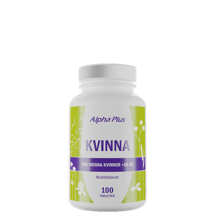 Kvinna 100 tab från Alpha Plus är ett vitamin- och mineraltillskott anpassat för den mogna kvinnan som passerat fertil ålder. Kvinna 100 tab är ett komplett multivitamin-mineraltillskott med noga utvalda ingredienser för dagligt bruk.