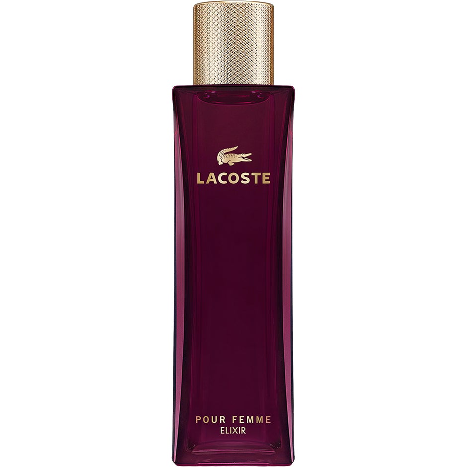 90 ml, Lacoste Pour Femme Elixir EdP -hajuvesi yhdistelee kukkaisia ja makean huumaavia tuoksunuotteja luoden sensuellin kokonaisuuden. Hajuvesi aukeaa roséepippurin, mandariinin ja jasmiinin aromeilla. Sydäntuoksu koostuu gardeniasta, heliotroopista ja jasmiinista. Hajuveden pohjatuoksu on pehmeän makea sekoitus vetiveriä, seetriä, vaniljaa, patsulia ja tuberoosaa.Makea kukkaistuoksuLanseerattu: 2019TuoksuAlkutuoksuRoséepippuri, mandariini ja jasmiiniSydäntuoksuGardenia, heliotrooppi ja jasmiiniPohjatuoksuVetiveri, seetri, vanilja, patsuli, ambroxan-yhdiste ja tuberoosa