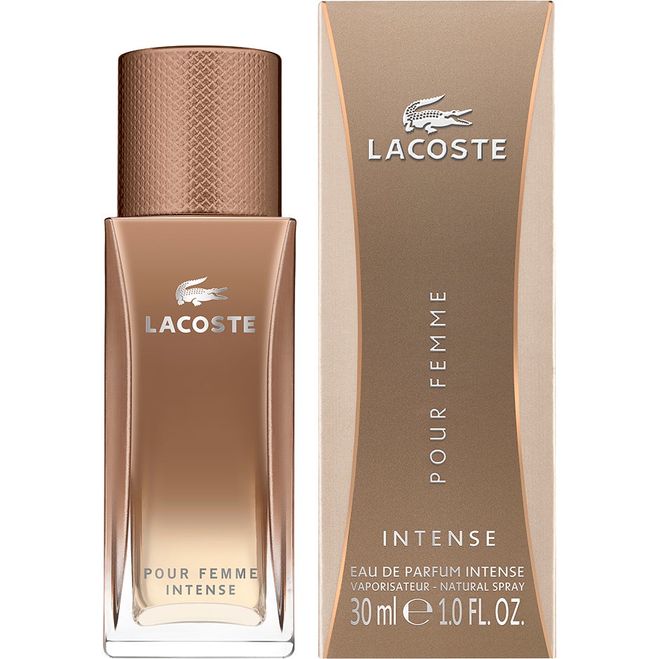 30 ml, Lacoste Pour Femme Intense EdP -hajuvesi on intensiivinen sekoitus karamellimaisia vivahteita ja puisia, pehmeitä tuoksunuotteja. Lacoste Pour Femme Intense on tuoksu, joka ilmentää aistikasta tyyliä ja viettelevää älyä. Lacoste Pour Femme Intense EdP aukeaa karamellin huumaavalla tuoksulla ja sekoittuu ruusun elementteihin. Seetri, santelipuu ja myski tekevät pohjatuoksusta miellyttävän pehmeän ja lämpimän.Lanseerattu: 2018TuoksuAlkutuoksuKaramelliSydäntuoksuRuusuPohjatuoksuSantelipuu, myski ja seetri
