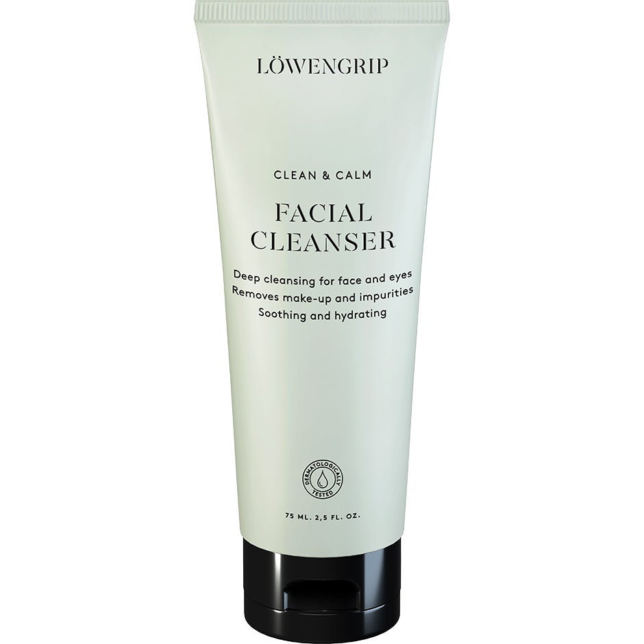 75 ml, Löwengrip Clean & Calm Facial CleanserPehmeästi vaahtoava Clean & Calm Facial Cleanser puhdistaa kasvoilta meikin ja epäpuhtaudet hellästi ja ihoa kuivattamatta. Geelimäinen koostumus jättää ihon miellyttävän heleäksi ja pehmeäksi. Puhdistusgeeli sisältää rauhoittavaa allantoiinia ja kosteutta sitovaa glyseriiniä. Sopii kaikille ihotyypeille.Hellävarainen puhdistusgeeliPoistaa kasvoilta meikin ja lianSopii kaikille ihotyypeille