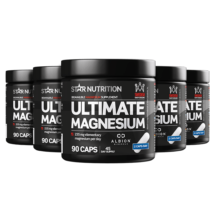 5 x Magnesium, 90 caps – Star Nutritionin magnesiumia laadukkaasta raaka-aineesta. Magnesium edistää proteiinisynteesiä, lihastoimintaa ja elektrolyyttitasapainoa!