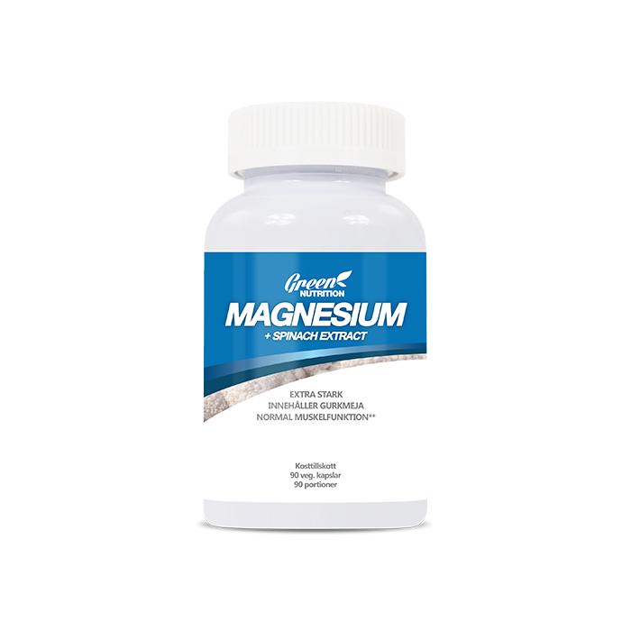 Magnesium + Spinach Extrakt från Green Nutrition är ett kosttillskott med två former av magnesium samt gurkmeja och spenatpulver.