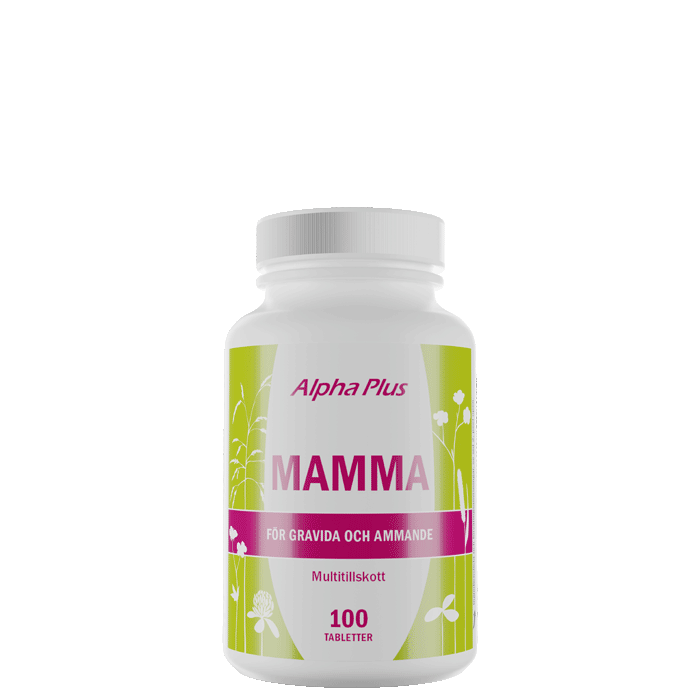 Mamma 100 tab från Alpha Plus är ett vitamin- och mineraltillskott anpassat för gravida och ammande kvinnor. Mamma 100 tab är ett komplett multivitamin-mineraltillskott med noga utvalda ingredienser för dagligt bruk.