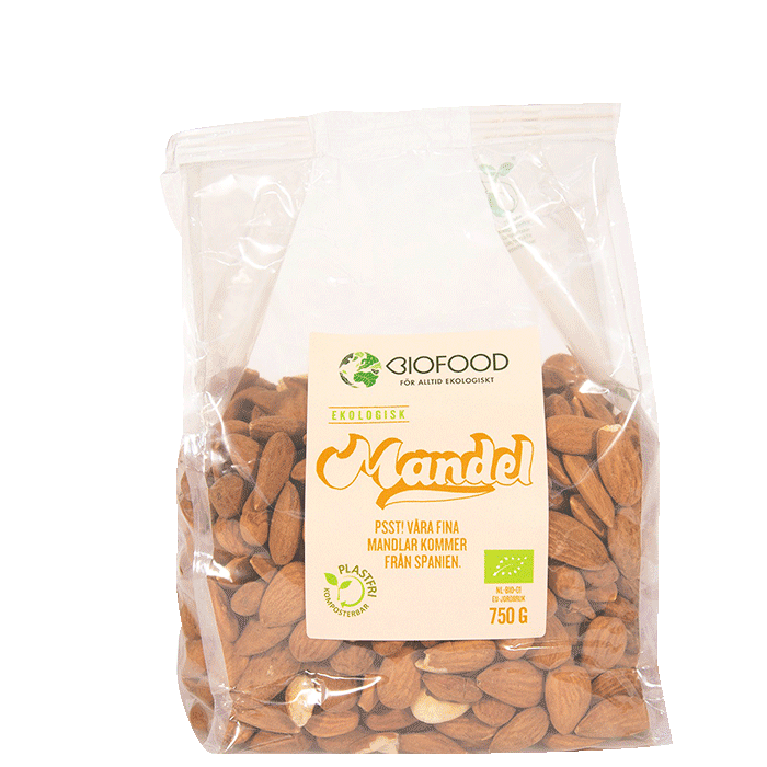 Biofoods hela och ekologiska mandlar är ett perfekt snacks eller mellanmål för dig som är ute efter en produkt med ett naturligt näringsrikt innehåll.