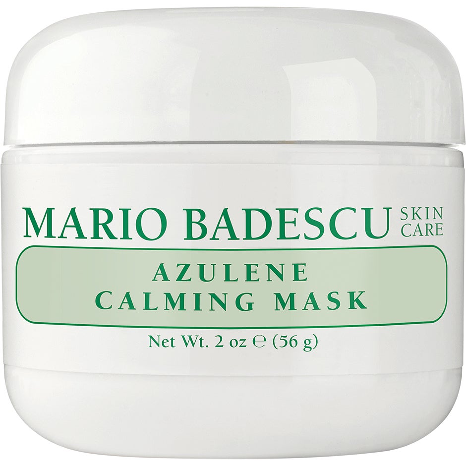 59 ml, Mario Badescu Azulene Calming Mask on rauhoittava ja tasapainottava kasvonaamio, joka sopii erityisesti herkän ihon hoitoon. Yrttiuutteita, mehiläisvahaa ja luonnonmineraaleja sisältävä koostumus kosteuttaa ja puhdistaa ihoa.Kaikille ihotyypeille Koko: 59 ml