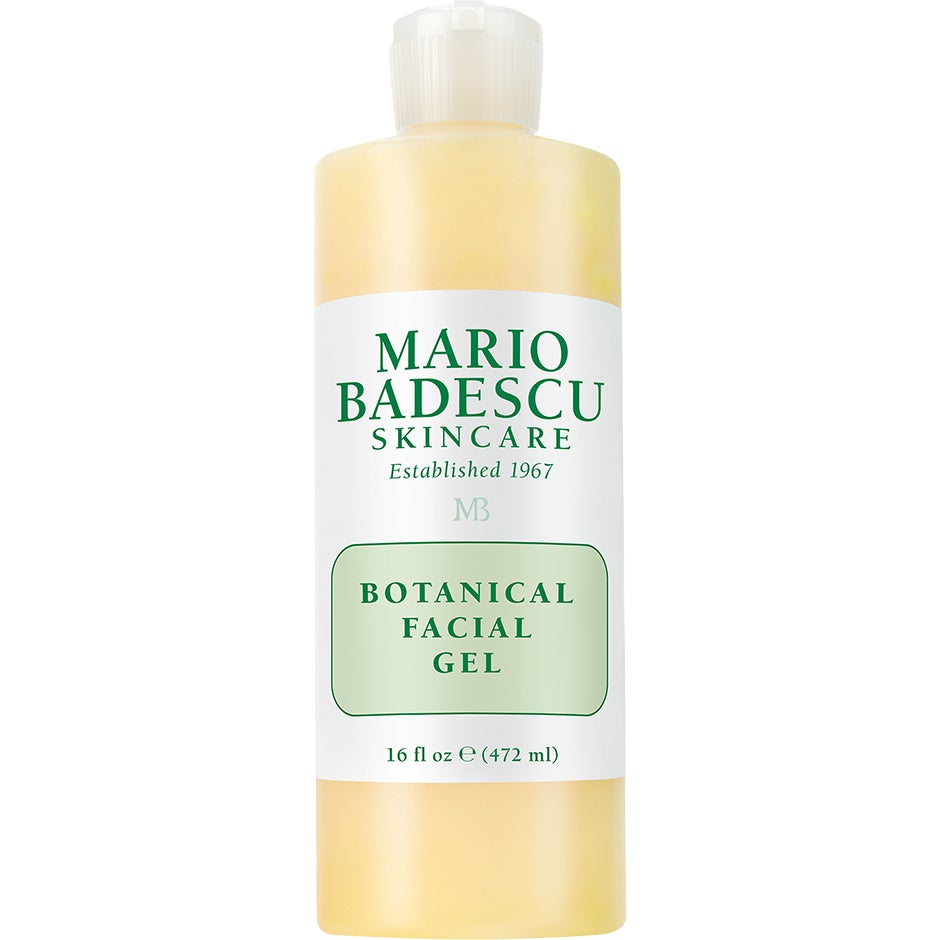 473 ml, Mario Badescu Botanical Facial Gel on vaahtoamaton puhdistusgeeli, jonka hellävarainen koostumus puhdistaa iholta tehokkaasti meikin, epäpuhtaudet sekä ylimääräisen rasvan ihoa kuivattamatta. AHA-happoja sisältävä geeli kuorii ihoa hellästi ja ehkäisee ihohuokosten tukkeutumista.Seka- ja rasvaiselle iholle