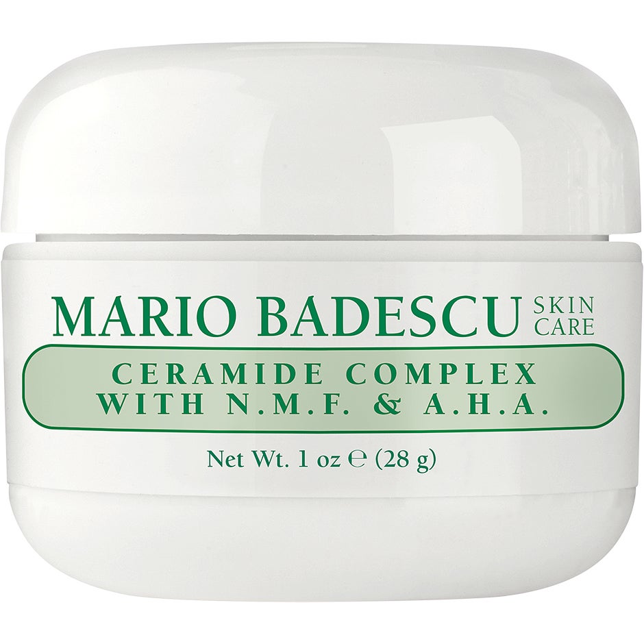 28 g, Mario Badescu Ceramide Complex With NMF & AHAMario Badescu Ceramide Complex With NMF & AHA on tehokas hoitovoide, jonka sitruunaruohouutteesta peräisin olevia AHA-happoja sisältävä koostumus auttaa häivyttämään pigmenttiläiskiä ja tasoittamaan ihon sävyä. Ihoa pehmentävän voiteen A- ja E-vitamiinit sekä ravitsevat öljyt tekevät ihosta kosteutetun ja heleämmän.Koko: 29 ml