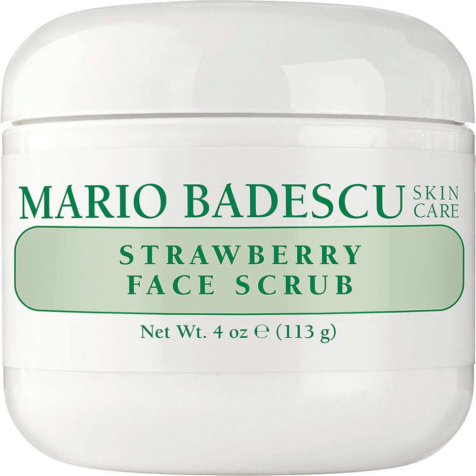 118 ml, Mario Badescu Strawberry Face Scrub on suloisen mansikkainen kasvokuorinta, joka sisältää aitoja mansikansiemeniä. AHA-happopitoinen tuote poistaa iholta epäpuhtaudet ja kuolleen ihosolukon sekä auttaa ennaltaehkäisemään ihohuokosten tukkeutumista ja heleyttämään ihoa. Kaikille ihotyypeille Koko: 118 mlKäyttöLevitä tuotetta puhtaalle, kostealle kasvojen iholle ja hiero hellästi. Huuhtele hyvin ja viimeistele ihonhoito Mario Badescun kasvovedellä ja hoitovoiteella. Käytä 2-3 kertaa viikossa.