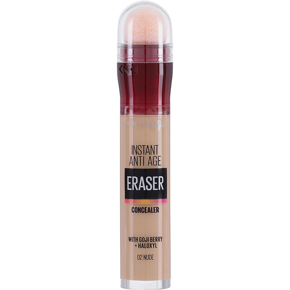 6.8 ml, Maybelline New York Instant Anti-Age The Eraser Eye -peiteaine auttaa kätkemään tummat silmänaluset ja silmänalusihon hennot juonteet. Peiteaineen kätevä Micro-Corrector-applikaattori auttaa levittämään peiteaineen silmänalusille vaivatta ja sen goji-marjaa sekä Haloxyl™-aktiiviainetta sisältävä koostumus tekee silmänympärysalueesta hetkessä kirkkaamman ja virkeämmän näköisen.PeiteaineKätevä applikaattoriHäivyttää tummia silmänalusiaKoko: 6 mlAinesosatHuomioithan, että ainesosaluettelo on lisätty sivulle yhtä aikaa tuotteen kanssa ja on siksi saattanut joissakin harvoissa tapauksissa muuttua jälkikäteen. Jos sinulla on herkkä iho tai allergioita, tarkasta ainesosaluettelo tuotepakkauksesta aina ennen tuotteen käyttöönottoa. Tarvittaessa voit myös ottaa yhteyttä asiakaspalveluumme.Kokeile tuotetta varovasti esimerkiksi käsivarren iholle ennen sen käyttöönottoa varmistaaksesi ettet ole herkistynyt sen sisältämille ainesosille.