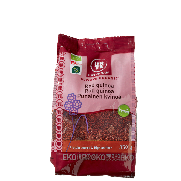 Quinoa Röd från Urtekram är ekologisk röd quinoa som har ett högt fiberinnehåll och som dessutom innehåller vegetabiliska proteiner. Med en lätt nötaktig smak.
