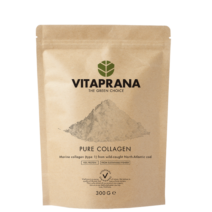 Pure Collagen är ett 100%-igt kollagentillskott från Vitaprana. Kollagenet kommer från Nordatlantisk, vildfångad torsk.