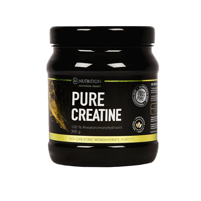 Pure Creatine – M-Nutritionin ravintolisä, joka sisältää korkealuokkaista 100% kreatiinimonohydraattijauhetta. Lisää lihasmassan ja -voiman kasvua!