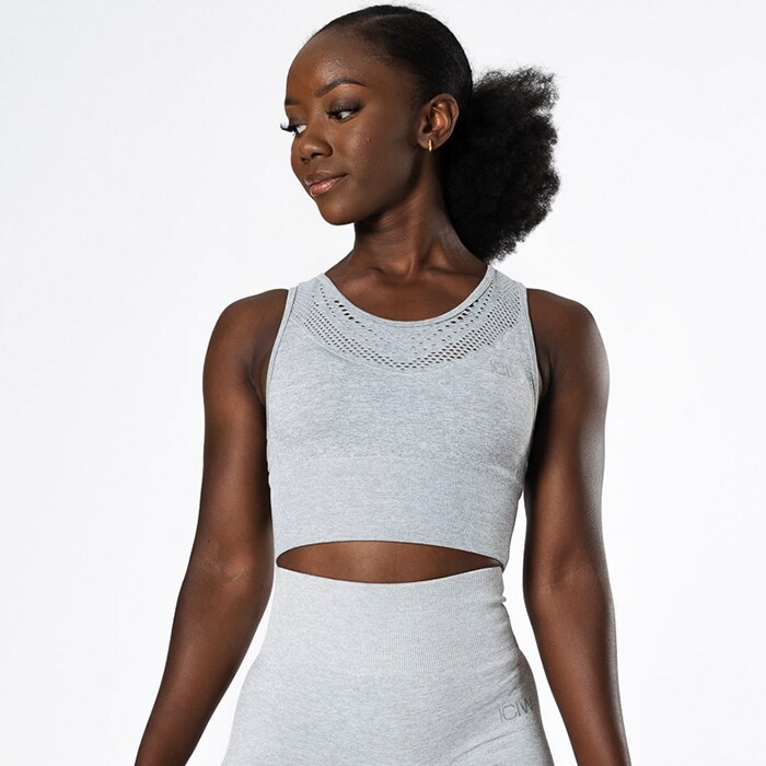 Queen Mesh Seamless Crop Top, Light Grey Melange