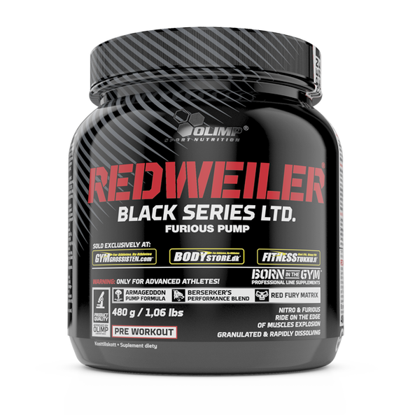 Redweiler on hardcore-PWO Olimp Sport Nutritionilta! Antaa energiaa, fokusta, pumppia ja räjähtävyyttä!
