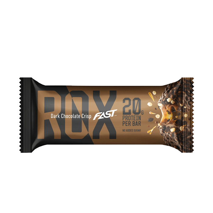 ROX Protein Bar – FASTin todella hyvänmakuinen proteiinipatukka, jossa on pehmeä sisus, täyteläinen välikerros ja rapea päällys. Ilman lisättyä sokeria!