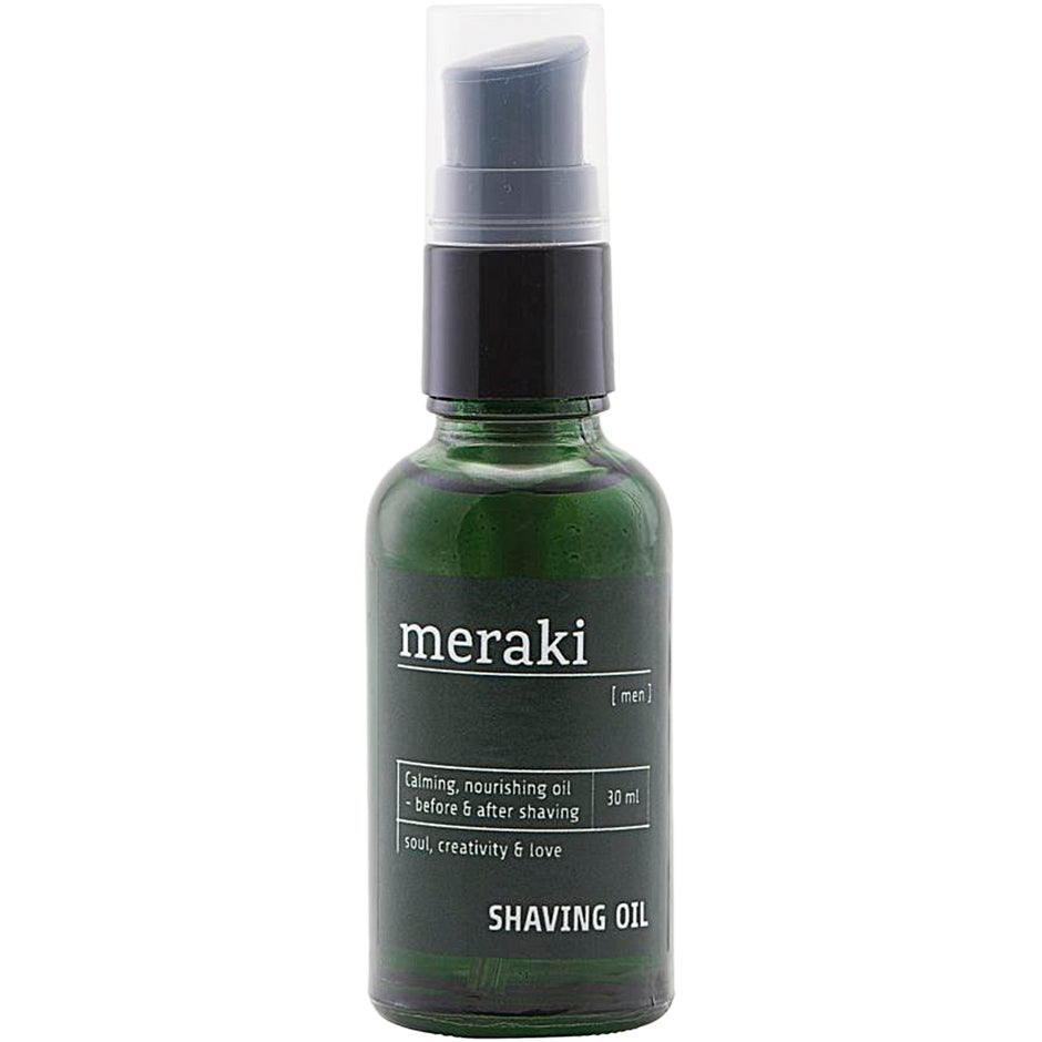 30 ml, Meraki Shaving Oil For Men on parranajoöljy, jonka avulla pidät hyvää huolta kasvojesi herkästä ihosta parranajon yhteydessä. Parranajoöljy auttaa terää luistamaan iholla tasaisesti ja parranajoöljy myös suojaa ihoa tehokkaasti parranajon aikana. Parranajoöljy pehmentää ihoa ja ravitsee sitä, mikä tarkoittaa, että vältät kuivan ja ärtyneen ihon parranajon jälkeen. Öljyä voidaan käyttää sekä parranajovaahdon vaihtoehtona että levittää parranajon jälkeen. Parranajoöljy Tekee parranajosta miellyttävää Tekee ihosta pehmeän tuntuisen