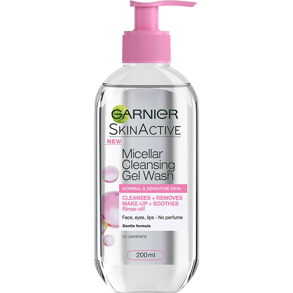 200 ml, Garnier Skin Active Micellar Cleansing Gel Wash -puhdistusgeelin misellejä hyödyntävä koostumus puhdistaa kasvoilta meikin ja epäpuhtaudet samalla kun se rauhoittaa ihoa. Herkällekin iholle sopiva hajusteeton koostumus sopii käytettäväksi myös silmä- ja huulimeikin poistoon.Ihon ja meikin puhdistukseen Sopii myös silmä- ja huulimeikin poistoon Hajusteeton ja parabeeniton Koko: 200 ml