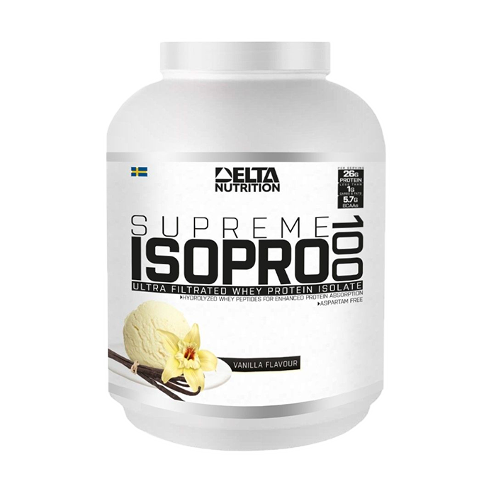 Delta Nutritionin Supreme ISO PRO 100 on kehittynyt proteiinijauhe, joka sisältää isoloitua ja hydrolysoitua proteiinia korkealla raaka-ainelaadulla!