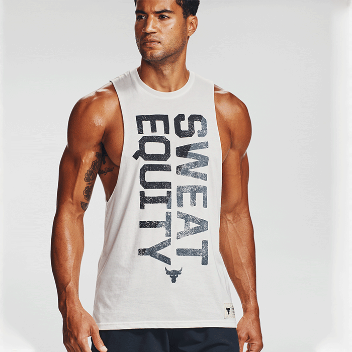 » UA Project Rock Sweat Equity Tank, Onyx White