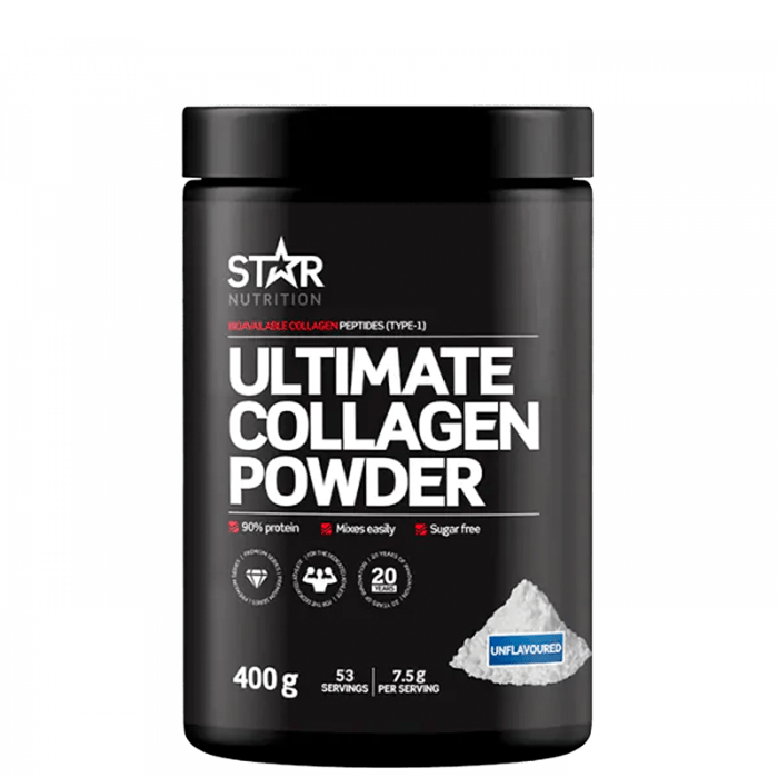 Star Nutrition Ultimate Collagen on puhdas, kollageenipitoinen ravintolisä jauhemuodossa. Kollageeni on tärkeä rakennusaine nivelille, luustolle ja iholle.