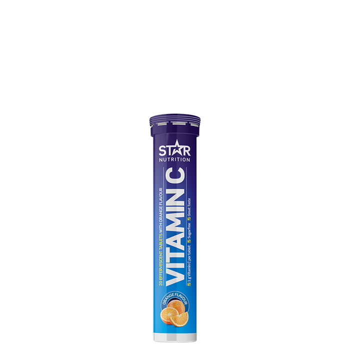 Vitamin-C brustabletter från Star Nutrition ger 1000 mg C-vitamin/tablett och blandas lätt i ett glas vatten till en välsmakande apelsindryck som är helt sockerfri.